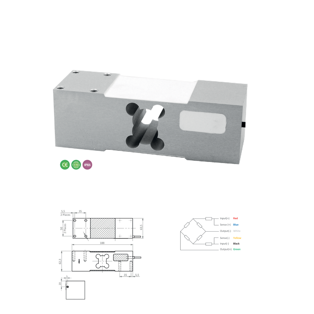 | Classe de précision | OIML C3 | OIML R60 C3 | OIML R60 C4 | OIML R60 C5 | Puissance | 2.0 ± 0.2 mV/V |